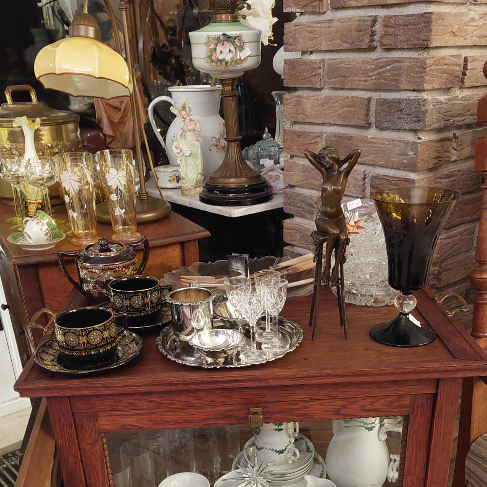 Porzellan, Gläser, Bilder, Wäsche, Lampen, Möbel und Kuriositäten aus vergangenen Epochen.
